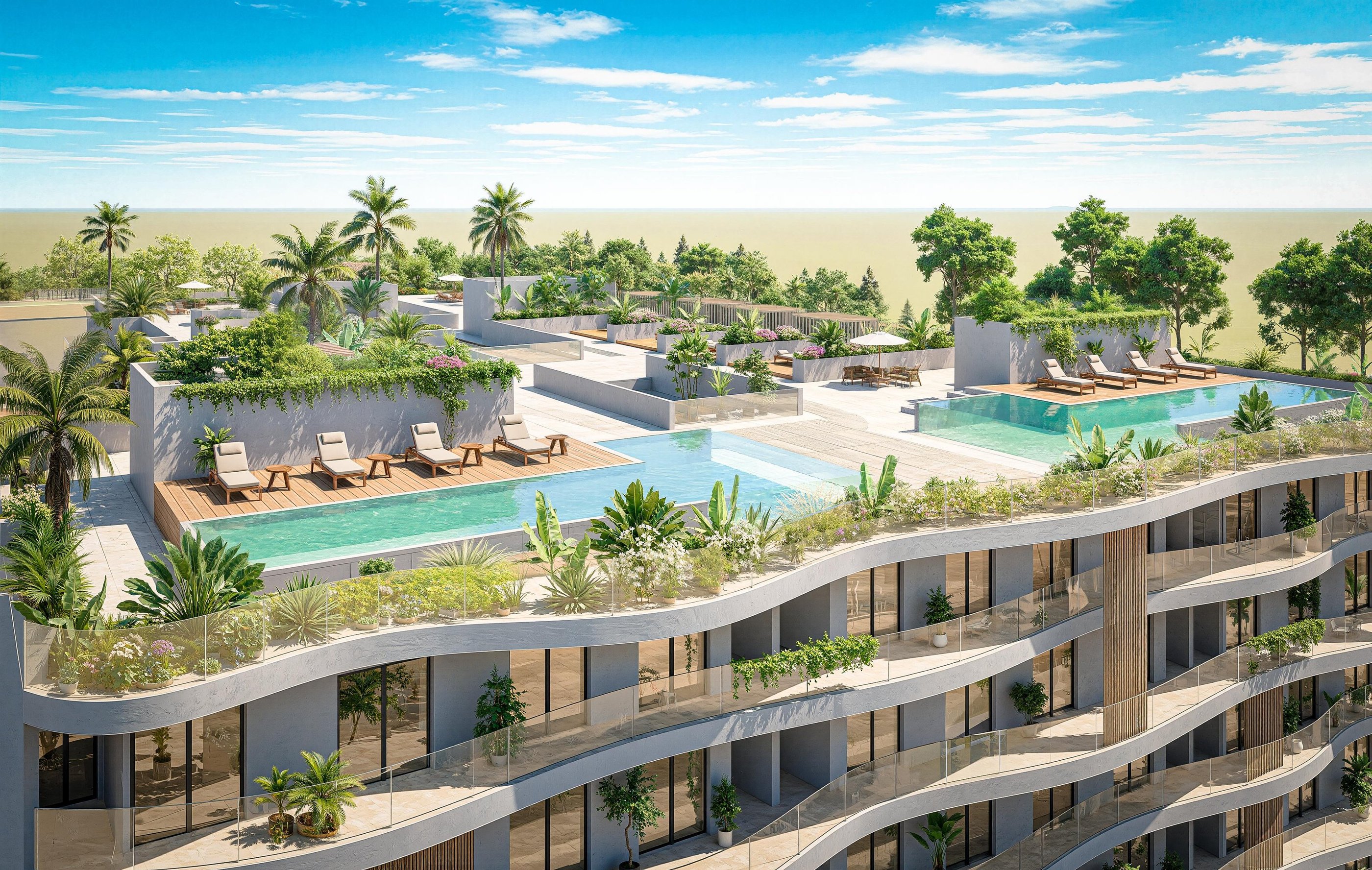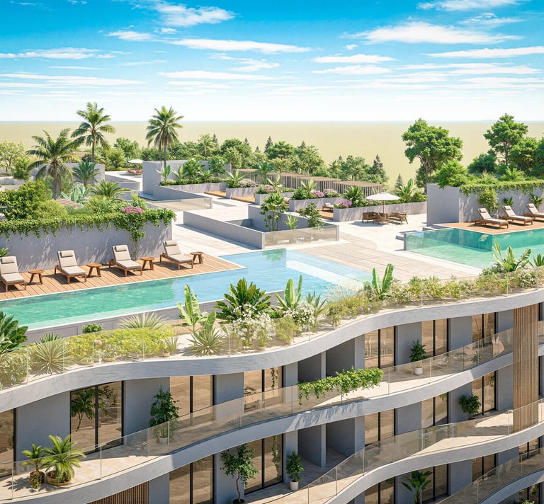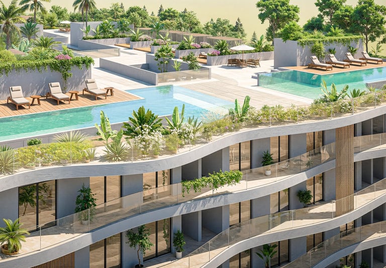 La Résidence Jardin de Bali offre un environnement de vie à la fois moderne et agréable. Constituée d'appartements aux dimensions bien pensées, elle garantit un équilibre idéal entre sérénité, praticité et excellence architecturale. Ses jardins en rooftop offre une expérience de vie exceptionnelle