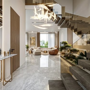Les intérieurs ont été pensés comme de vrais lieux de vie familiaux : grands séjours ouverts sur l’extérieur, chambres confortables, finitions soignées et matériaux nobles créent une atmosphère chaleureuse et sophistiquée.